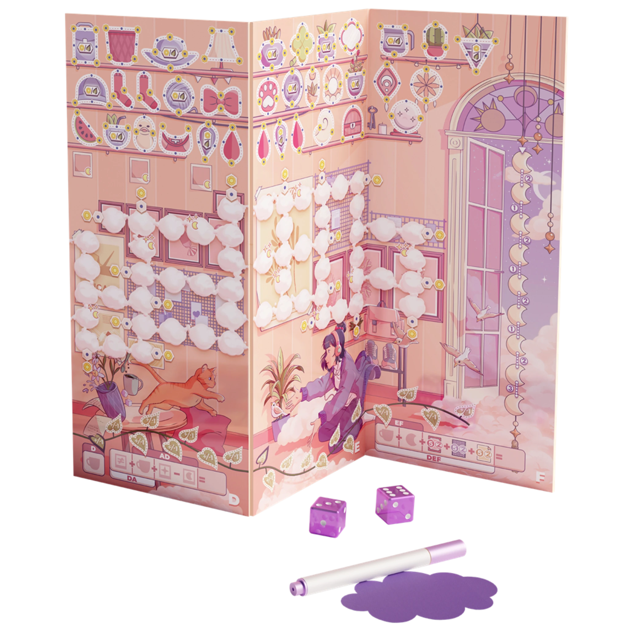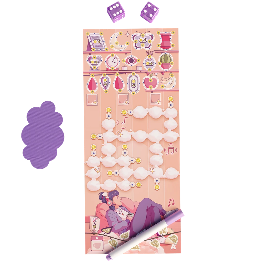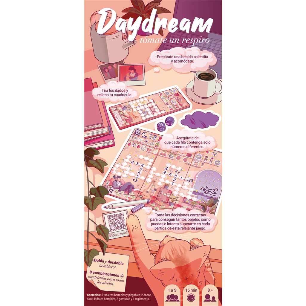 Daydream es un juego tipo roll & write (con tableros borrables) que convierte unos minutos de calma en un pequeño reto de lógica y optimización. Además, su estética suave y onírica acompaña partidas ligeras, ideales para jugar mientras te tomas un café o simplemente quieres bajar revoluciones. Por otro lado, su formato rápido hace que encaje genial como “juego comodín” entre sesiones más largas.