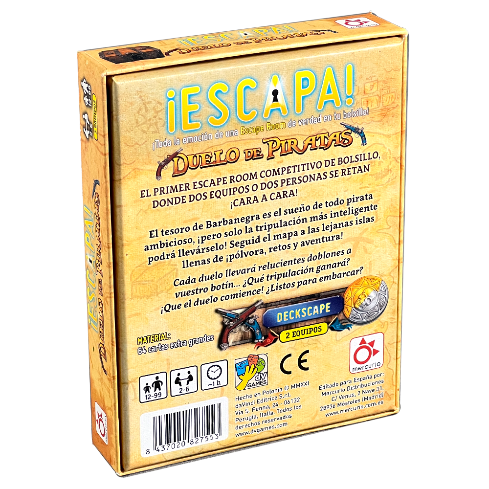 Este es el primer escape room competitivo de bolsillo, diseñado para dos jugadores o dos equipos que se enfrentan cara a cara. Por otro lado, cada duelo pone a prueba la rapidez mental y la capacidad de observación, ya que cada victoria acerca un poco más al botín final. De esta forma, la tensión y la rivalidad crecen con cada reto superado.