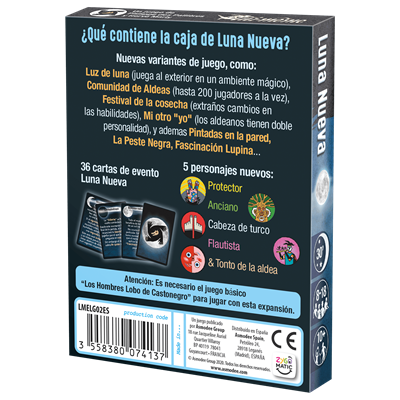 Con Luna Nueva, la célebre saga se expande con nuevas reglas, eventos y personajes que transforman cada partida en una experiencia única. Además, las cartas de evento añaden giros sorprendentes que cambiarán el curso de la historia en cada fase de la noche, haciendo que ningún juego vuelva a ser igual al anterior.