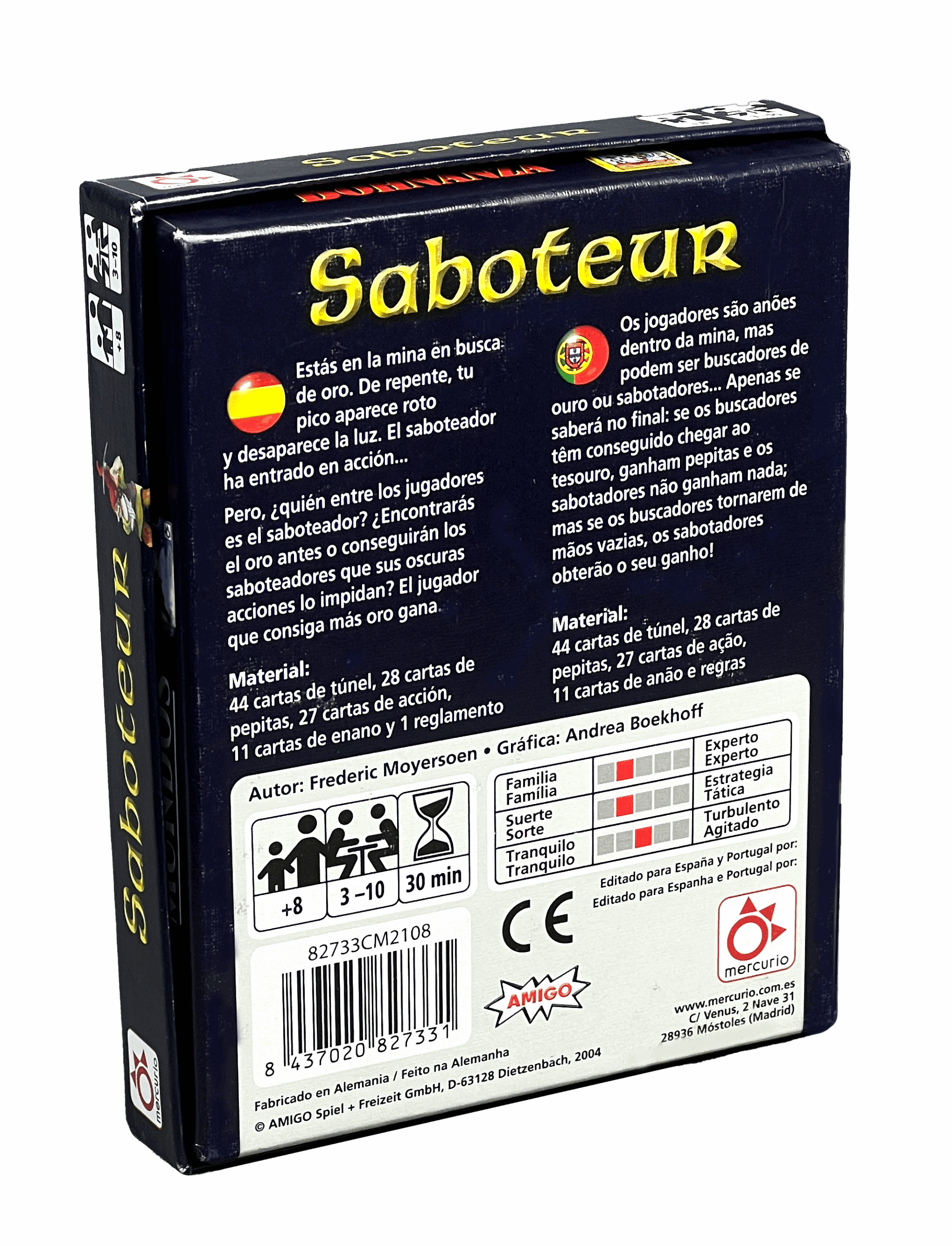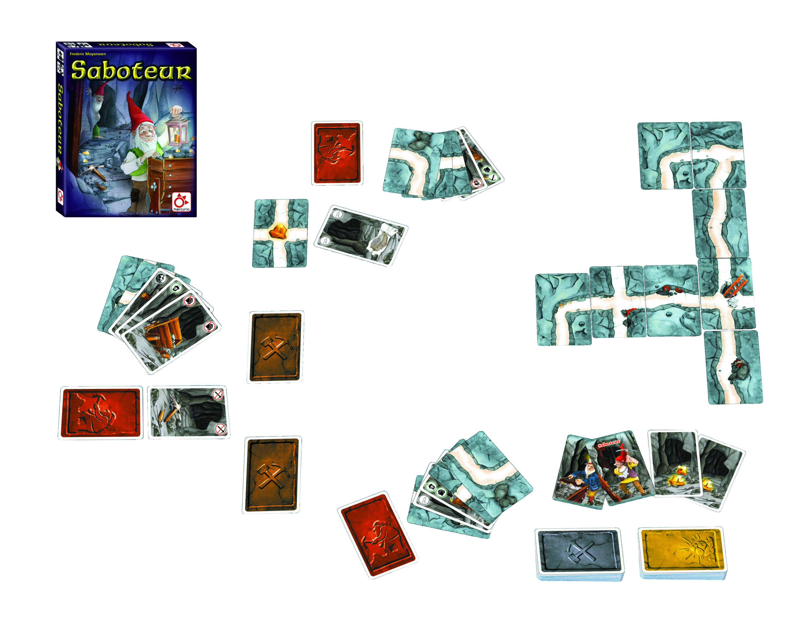 En Saboteur, te adentras en una mina oscura en busca del ansiado oro. Sin embargo, no todo es lo que parece: alguien entre los mineros está saboteando el camino hacia la riqueza. Además, la tensión aumenta con cada turno, ya que nunca sabrás en quién confiar ni cuándo tu propio pico podría romperse.